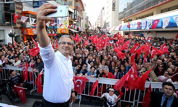 Etkinliğin son bölümünde sahneye çıkan Karşıyaka Belediye Başkanı Hüseyin Mutlu Akpınar, güzel bir sürprize imza attı. Orkestranın başına geçen Akpınar, İzmir Marşı boyunca bateri çalarak sahnedekilere eşlik etti. Başkan Akpınar’ın bu sürprizi Çarşı’yı dolduran Karşıyakalılardan büyük alkış aldı; ‘Türkiye’nin gururu, Hüseyin Mutlu’ tezahüratı yapıldı. Yoğun istek üzerine marşı ikinci kez çalan Akpınar, sahneden, 10 bin kişi ile selfie de çekti.