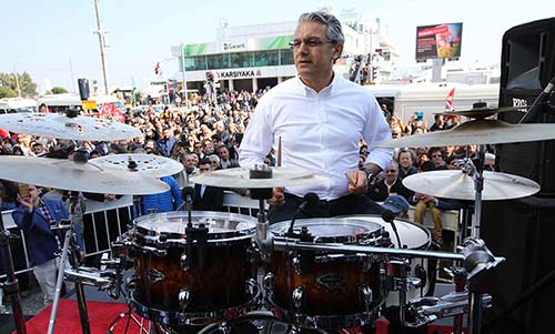 Karşıyaka Belediyesi’nin, Karşıyaka Çarşısı içinde düzenlediği etkinlikte buluşan yaklaşık 10 bin kişi, hep birlikte İzmir Marşı’nı söyledi. Sürpriz bir şekilde sahneye çıkan Belediye Başkanı Hüseyin Mutlu Akpınar da orkestra ile birlikte bateri çaldı. Başkan Akpınar “Cumhuriyet değerlerinden ve demokrasiden asla vazgeçmeyeceğiz” dedi.
