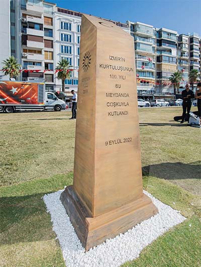 İzmir Büyükşehir Belediyesi kentin kurtuluşunun 100. yılını ölümsüzleştirmek için Gündoğdu Meydanı'na 100. Yıl Anı Taşı yerleştirdi. 100. Yıl Anı Taşı'nın açılışını İzmir Büyükşehir Belediye Başkanı Tunç Soyer yaptı. Başkan Tunç Soyer'e Dikili Belediye Başkanı Adil Kırgöz, İzmir Büyükşehir Belediye Başkan Vekili Mustafa Özuslu, İzmir Büyükşehir Belediyesi Genel Sekreter Yardımcıları Şükran Nurlu, Ertuğrul Tugay, Suphi Şahin, Ozan Yılmaz, İZSU Genel Müdürü Ali Hıdır Köseoğlu, İzmir Büyükşehir Belediyesi bürokratları, meclis üyeleri ve yurttaşlar eşlik etti.