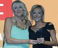 Haytap Başkanı Esin Önder gecenin gelirinin barınağa bağışlanması nedeniyle Karşıyaka LIFE İmtiyaz sahibi Güliz Eğrihancıya bir teşekkür plaketi verdi.