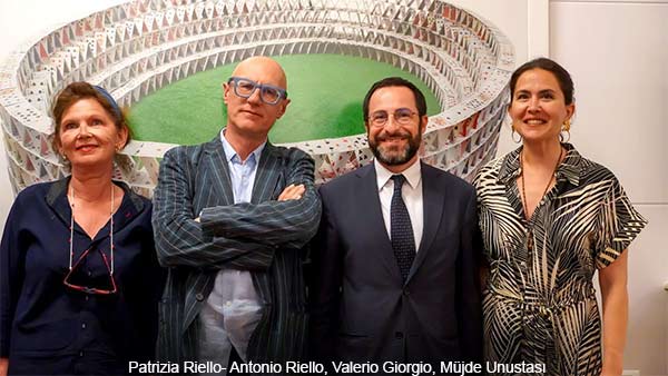 Arkas Sanat Merkezi’nde “Elgiz Koleksiyonu’nda Mitler ve Hayaller” sergisi kapsamında düzenlenen etkinlik, İtalyan sanatçı Antonio Riello’nun katılımıyla gerçekleşti. İzmir İtalya Konsolosluğu desteği ile Arkas Sanat Merkezi’nde sanatseverlerle bir araya gelen sanatçı, sergide iki eseri ile yer alıyor. Bir tanesi Elgiz Koleksiyonu’nda yer alan “A desperate attempt of vice to turn up on virtue” “Ahlaksızlığın Erdem Olma Yolundaki Ümitsiz Çabası” adlı eseri, bir diğer eseri de bu sergi kavramı çerçevesinde sanatçı katkısı olarak seçkide yer alan “La Giostrina” “Atlı karınca” adlı eseri. Sanatçının koleksiyonda bulunan çalışmasının arkasındaki ana vizyon: “Her şey yeni bir yaşam türünde yeniden oluşturulabilir.” Roma Kolezyumu'nu anımsatan karttan arena yerleştirmesi geçmiş bir medeniyetin (Roma) harabelerini hatırlatıyor. Sanatçı eserinde sadece malzemeleri ve nesneleri değil, aynı zamanda davranış ve alışkanlıkları da iyiye dönüştürme konusunu ele alıyor. Kötülüğün iyiye dönüşüm süreci zaman alır, çok sabır ve beceri ister. İyi ve kötünün anlamı geniş bir antropolojik öğe katmanına tabidir. Antonio Riello'nun bu çalışması esas olarak “Tarih, kötülüğü erdeme çevirebilir mi?” sorusu üzerinde düşünmeye davet ediyor. Sergiye konsinye olarak eklenen diğer eseri ise“La Giostrina”(Atlı karınca) isimli, sanatçının daha yeni bir video çalışması. Bu eserinde Antonio Riello, melez insanı, kişisel perspektifinden alaycı acıyı neşeli bir vizyonla harmanlayarak izleyiciye sunuyor.