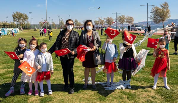 Ayrıca Karşıyaka Belediyesi sahilde bir uçurtma şenliği gerçekleştirdi. Çeşitli ülkelerin bayraklarından oluşan uçurtmalar uçuran çocuklar keyifli anlar yaşadı. Karşıyaka Belediye Başkanı Dr. Cemil Tugay “Pandemi nedeniyle dünya çocuklarını misafir edemedik ama bayraklarını Karşıyaka’mızın semalarında dalgalandırdık. Yaşasın 23 Nisan!” diyerek, tüm çocukların 23 Nisan Ulusal Egemenlik ve Çocuk Bayramı’nı ve TBMM’nin kuruluşunun 101. yılını kutladı.