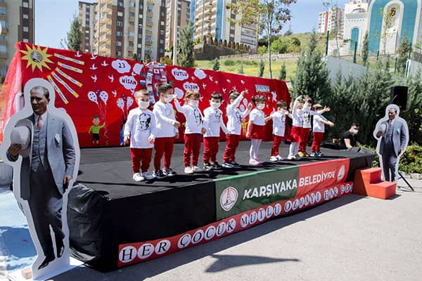 Pandemi nedeniyle bu yıl 23 Nisan’da geniş katılımlı etkinlikler yapılamadı ancak Karşıyakalı çocuklar Ulusal Egemenlik ve Çocuk Bayramı’nı evlerinde, okullarında ve parklarda coşkuyla kutladı.