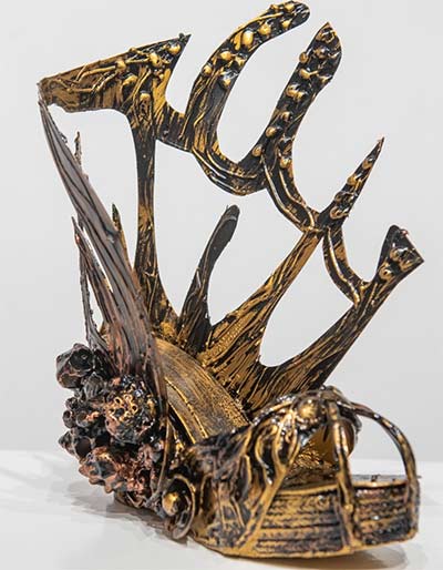 Disiplinlerarası çalışmalarını sürdüren Fırat Karapınar ise özellikle spor ayakkabılardan kaynaklı ciddi bir atığın mevcut olduğunu dile getirerek şöyle konuştu; “Yılda 25 milyar spor ayakkabı üretiliyor ve bunlar geri dönüşüme dahil edilmiyor. Biz ayakkabılardan da farkındalık yaratabileceğimizi düşündük ve atılmış ayakkabıların parçalarından plastik nesnelerden, kumaş parçalarından, insanların yaşamlarına dokunmalarını sağlamaya çalıştık. Bu eserleri yaratırken Zygmunt Bauman’ın ‘Iskarta Hayatlar’ adlı kitaptan esinlendim. Renk olarak altın, gümüş ve bakır gibi sembolik renkler tercih ettim. Bunları seçmemin özel bir nedeni var; madeni değerler tüm dünya sınırlarını yeniden şekillendiriyor ve değerli kılıyor. İzmir’in kent kültürüne nitelikli mekanlar kazandırdığı ve genç sanatçılarla ilgilendiği için İzmir Büyükşehir Belediye Başkanı Tunç Soyer’e teşekkür ederim.”