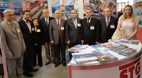 Soldan sağa, Ercan Turan (işadamı), Sinan Kızıltan (Türkiye Su Ürünleri ve Hayvansal Mamuller İhracatçı Birlikleri Sektör Kurulu Başkanı), Sevinç Kopuz (STG Yönetim Kurulu Üyesi), Mustafa Bağcı (STG Yönetim Kurulu Üyesi), Gazi Bilgin (Azerbaycan Ticaret Başmüşaviri), Yasin Göral (TÜSİAB Genel Sekreteri, Azerbaycan Türk Sanayici ve İşadamları Derneği), Dr. Elşen Ebülhesenli (Azerbaycan Ticaret Müşaviri), Melih İşliel (STG Yönetim Kurulu Başkanı), Berna Çiftçioğlu(EUF-E uluslar arası Fuar Tanıtım Hizmetleri A.Ş.)