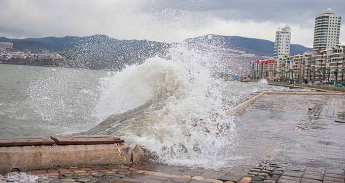 İzmir’de meteorolojik koşulların yarattığı etkiye bağlı olarak deniz taşkını yaşandı. İzmir Büyükşehir Belediyesi İZSU Genel Müdürlüğü ve İtfaiye Dairesi Başkanlığı ekipleri, deniz seviyesinin 1 metre yükseldiği taşkına karşı, tüm personel ve ekipmanıyla halkın can ve mal güvenliğini sağlamak için özverili bir mücadele yürütüyor.