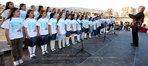 Kursiyerlerin ardından sahneye Bayraklı Belediyesi Çocuk Korosu çıktı. Aileler ve kendilerini izleyen çocuklara 10. Yıl Marşı ile merhaba diyen koro birbirinden güzel şarkı ve marşlarla dinleyenleri kendilerine mest etti.