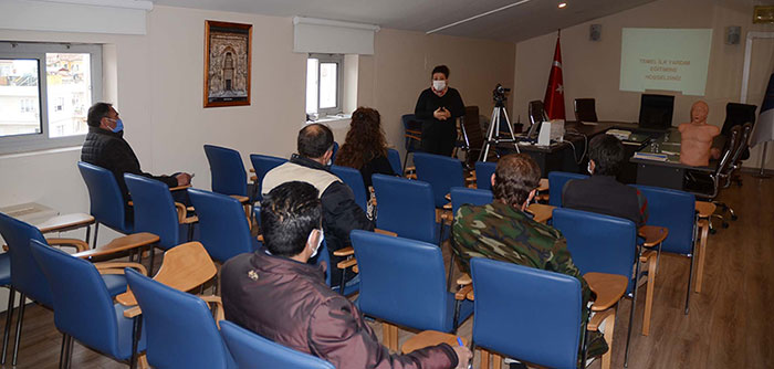 Kuşadası Belediyesi, İş Sağlığı ve Güvenliği Kanunu hükümleri kapsamında personeline uygulamalı ilk yardım eğitimi verdi. Kuşadası Belediyesi Encümen Salonu’nda gerçekleştirilen eğitimde katılımcılara genel ilk yardım bilgileri, solunum yolu tıkanıklığı, kanama, yaralanma gibi durumlarda yapılması gerekenlerle ilgili bilgilendirme yapıldı.