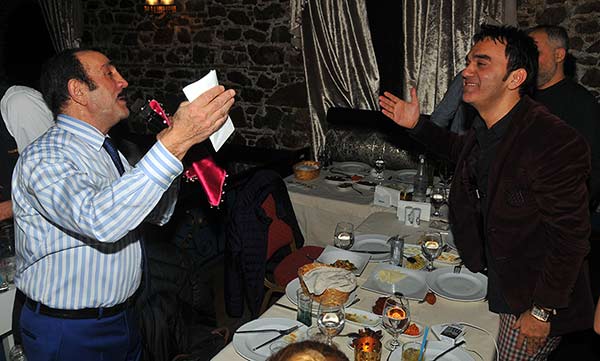 Fotoğraf çekinmek isteyen herkesle tek tek, usanmadan telefonların kameralarına tek tek poz verdi. Mekan sahibi Tibet Özer ile karşılıklı şarkılar söyleyen Mustafa Keser, yaklaşık 3 saat sahnede kaldı.