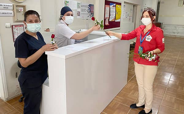 Kuşadası Belediyesi, koronavirüs salgını dolayısıyla yaklaşık 1,5 yıldır yoğun mesai harcayan, ailelerinden ve çocuklarından ayrı kalan sağlık çalışanlarını da unutmadı. Güvercin Masa Gezici Ekibi tarafından Kuşadası Devlet Hastanesi ile kent genelindeki sağlık kuruluşu çalışanlarına kırmızı gül hediye edilip anneler günleri kutlandı.
