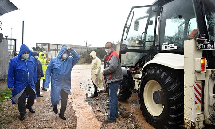 Tüm İzmir’de olduğu gibi rekor yağışların görüldüğü Bornova’da tüm imkanlar seferber edildi. Bornova Belediyesi Fen İşleri Müdürlüğü’ne bağlı ekipler başta kırsal mahalleler; Kayadibi, Çamiçi, Kurudere, Sarnıç, Eğridere ve Kavaklıdere ile Çamdibi Bölgesi, Atatürk Mahallesi ve Kızılay Mahallesi olmak üzere ilçe genelinde vatandaşların yardımına koşarken Başkan Mustafa İduğ da alandaydı.