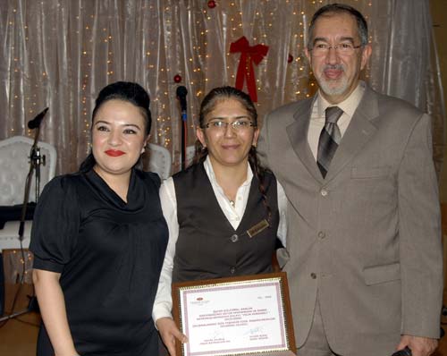 Yıl içinde ayın personeli olarak seçilen çalışanları sahneye davet eden Faik Alsaç yıl içinde gösterdiği çalışmaları sonucunda yılın personeli seçilen Gülcemal Akalının ödülünü verdi.