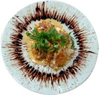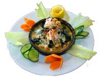 hazırlandığı Deniz mahsülleri sıcak ot tabağı, Erişte, karides, ahtapot, kımızı paprika, soya, krema dan oluşan Deniz Mahsülleri Erişte,
