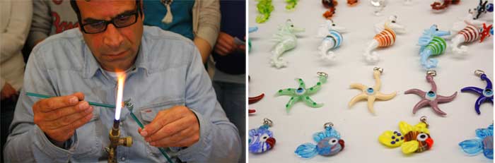 Cam süsleme sanatının gelişimi ve tarihiyle ilgili küçük bir bilgilendirmenin ardından sanatçılar renkli camlar kullanarak cam süslediler. Öğrencilerin istekleri doğrultusunda kolye, balık, at gibi figürler yapan sanatçılar isteyen öğrencilere de uygulama yaptırdı. İZMİR(Ege Ajans/ Mahmut Küçükyıldız)