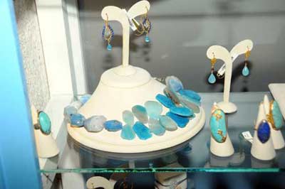 Çizgenakat, Sergide ipli,zincirli kolyeler, küpeler, ipli ve zincirli bilezikler yer alıyor. Bu malzemelerde de Akik, Kuartz ve Zikron taşlarını kullandım" dedi.