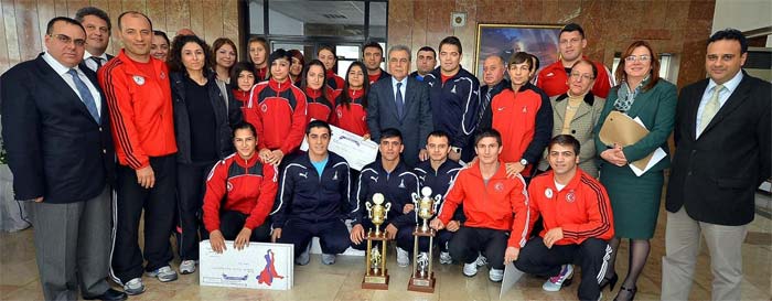 Başkan Aziz Kocaoğlu, İzmir Büyükşehir Belediyesinin Türkiye Şampiyonu olan bayan takımı ile Greko-Romen Türkiye Şampiyonasında ikinci olan erkek takımı güreşçilerini ödüllendirdi.