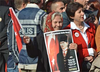 Vali Mustafa Toprak, Anıt Şeref Defterine yazdıklarını yüksek sesle okudu: "Cumhuriyetin90'ıncı yıldönümünü en büyük bayram olarak milletçe büyük bir coşku, gurur ve heyecanla kutluyoruz. Kurduğun vebize emanet ettiğin Cumhuriyeti bir yenilenme, modernleşme ve aydınlanmaprojesi olarak görüyor, hayat tarzı olarak görüyor ve benimsiyor ve yaşıyoruz.Başta Cumhuriyetimiz olmak üzere, gerçekleştirdiğin inkılaplar sayesindegösterdiğin çağdaş uygarlık düzeyine ulaşma hedefine kararlılıkla ilerliyoruz.Bugüne kadar olduğu gibi bundan sonra da ilke ve inkılaplarınla yaktığınaydınlanma ışığını söndürmeden taşıyacağız. Cumhuriyetimizi ve getirdiklerinikoruyarak ve daha da geliştirerek sonsuza dek yaşatacağız. Bu konuda en büyükgüvencemiz aydınlık geleceğimize inanan yüce Türk milletidir. Milli mücadeleyizaferle noktaladığın, Cumhuriyetimizin temellerini attığın İzmir'de azizhatıran önünde saygı ile eğiliyoruz. Ruhun şad olsun."