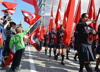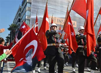 İzmirde 29 Ekim Cumhuriyet Bayramı kutlamalarıher zamanki coşkusunu bu yıl da sürdürdü. Kutlamalar, Cumhuriyet Meydanı'ndaki Atatürk Anıtı'naçelenk sunulmasıyla başladı.
