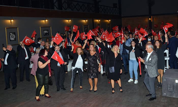 Ege Giyim Sanayicileri Derneği (EGSD) geçen yıl pandemi nedeniyle gerçekleştiremediği Cumhuriyet Kutlaması’nı İzmir Arena’da üyeleri ve davetlilerle kutladı. Atatürk ile ilgili yazdığı kitaplar ve binlerce Atatürk fotoğrafına sahip koleksiyonu ile tanınan Yazar Hanri Benazus’un da katıldığı gecede davetliler Cumhuriyet coşkusunu doyasıya yaşarken, ellerinde Türk bayrakları ile İzmir Marşı, Onuncu Yıl Marşı ve Gençlik Marşı’nı hep bir ağızdan söylediler.