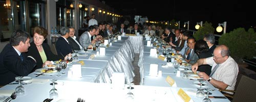 Dokuz Eylül Üniversitesi Rektörü Prof. Dr. Mehmet Füzün ve DEÜ Hastanesi Başhekimi Prof. Dr. Eyüp Hazan, 10 Mayısta düzenlenen geleneksel 5.Hastane Şenliği organizasyonuna destek veren firmaların yönetim kurulu başkanları ve üst düzey yöneticilerini dün akşam Rektörlük Çatı Restoranda ağırladı. Rektör Yardımcıları Prof. Dr. Alp Timur, Prof. Dr. Hakkı Bahar, Üniversite Genel Sekreteri Prof. Dr. Can Karaca, DEÜ Hastanesi Başhekim Yardımcısı Prof. Dr. Metin Manisalı başta olmak üzere hastane üst yönetiminin ev sahipliği yaptığı geceye, Selim Gökdemir (Megapol), Erdoğan Tözge (Ekselans Turizm), Metin Sancak (Folkart), Selim Yaşar (Yaşar Holding), Sezgin Canözden (Yatsan Yatakları), Necip Nasır (Nasır Group), Deniz Barçın (Barçınspor), Kaşif Özkan (Özdilek), Berrin Uşkay (Kaya İzmir Otel), Şehmus Kayapınar (İZSİAD), Mustafa Gürkan (SportsPark) ve Remzi Demir (Holland Bloem) konuk oldu.