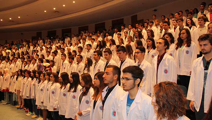 350 yeni öğrencinin beyaz önlük giydiği törende Dekan Yardımcısı Prof. Dr. Yeşim Tunçok’un önderliğinde Tıbbiyeli Andı okundu. Dekan Prof. Dr. Oğuz Dicle; fakülteye ilk üç sırada kayıt yaptıran öğrenciler Umut Enes Avcı, Busegül Ataman ve Fatih Öztürk’e beyaz önlüklerini giydirerek hediye verirken, 2015-2016 eğitim yılını en iyi derece ile bitiren altı dönemin birincileri Sevinç Dizdar, Göksel Çil, Gülfem Nur Akın, Ezgi Odası ve Asil Demirezen’e de başarı belgelerini sunarak teşekkür etti.