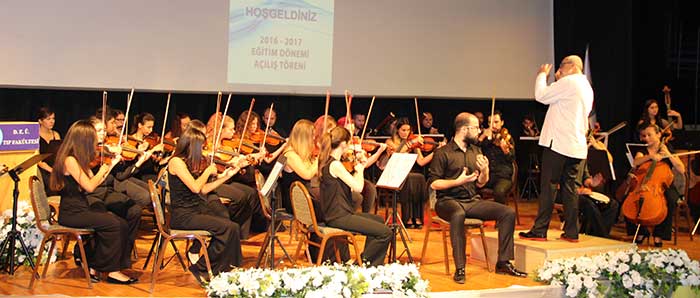 Dokuz Eylül Üniversitesi Tıp Fakültesi’nde 2016-2017 eğitim dönemi, Kurucu Öğretim Üyeleri Konferans Salonu’nda düzenlenen törenle açıldı. Tıp Fakültesi Dekanı Prof. Dr. Oğuz Dicle’nin ev sahipliğinde gerçekleştirilen törene, Rektör Prof. Dr. Adnan Kasman, Rektör Yardımcıları Prof. Dr. Türkay Baran, Prof. Dr. Hale Ören, Dekan Yardımcıları Prof. Dr. Oğuz Kılınç, Prof. Dr. Yeşim Tunçok, DEÜ Hastanesi Başhekimi Prof. Dr. Erkan Derebek, başhekim yardımcıları, öğretim üyeleri, idareciler, öğrenciler ve veliler katıldı.