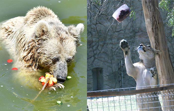 Buzlu yiyecek kalıplarında hayvanın türüne göre et veya çeşitli meyvelerle yiyeceklerin servis edildiğini belirten İzmir Doğal Yaşam Parkı Müdürü Şahin Afşin, “Hayvanlar bu sayede hem sağlıklı bir şekilde besleniyor, hem de serinliyor. Lemurlar, ayılar ve sırtlanlar bu soğuk ziyafetin tadını doyasıya çıkarırken, Bengal kaplanı daha çok yüzerek serinlemeyi tercih ediyor. Fil ailesi ise buzlu meyvelerini afiyetle yedikten sonra soğuk suyun altında keyif yapıyor. Mutfağımızda biyologlar tarafından özel menüler oluşturuluyor. Yazın ziyaretçiler Tropik Merkez’i gezmeyi tercih ediyor. Çünkü yaz ve kış burada sıcaklık sabit ve 26 derece” dedi.
