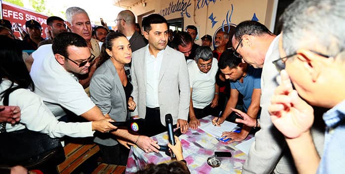 “Dağlarından bal, ovalarından yağ akan bu coğrafyadan ne istiyorlar? Bunların tek bildikleri var. Rant ve beton. İstiyorlar ki her yer beton olsun. Ama halk zeytinini ekmek istiyor, üzümünü toplamak, incirini toplamak istiyor. Aç gözlülükleri o kadar büyük ki… Bütün dünyayı aç bırakacak kadar aç gözlüler. Bundan sonra asla yalnız yürümeyeceksiniz. Eylemleriniz sürdüğü müddetçe bir adım gerinizde, sağınızda, solunuzda olmaya devam edeceğiz. Burayı onlara ham yaptırmayacağız” dedi.