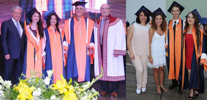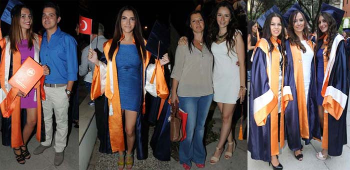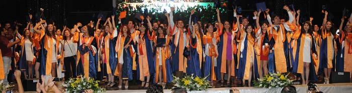 Mezuniyet törenine katılan İEÜ Mütevelli Heyet Başkanı Ekrem Demirtaş ve İEÜRektörü Prof. Dr. Tunçdan Baltacıoğlu, üniversite birincisi İşletme BölümüMezunu Fatma Canan Yaranoğluyla birlikte şeref kütüğüne yıldız çaktı.Üniversite ikincisi Veli Coşkun ve üçüncü Gizem Alp de diplomalarını veplaketlerini Demirtaş ve Baltacıoğlundan aldı. Mütevelli Heyet BaşkanıDemirtaş, öğrencilerinin hepsinin bir başarı örneği olduğunu, ailelerininçocuklarıyla gurur duymaları gerektiğini belirtti. Gençleri kazandıkları bilgive becerileri sergileyebilecekleri profesyonel hayata uğurladıklarını söyleyenRektör Prof. Dr. Tunçdan Baltacıoğlu, Üniversitemiz için durmak yok. Yenisoluklar, yeni meslekler ve başarılı bir gelecek kuracak olan öğrencilerimiziçin çalışıyoruz. Okulumuzda verdiğimiz eğitiminin ana amacı öğrencilerimiziözgür ve eleştirel düşünebilen, yaratıcı bireyler olarak yetiştirebilmek vetoplumda saygın bir yer edinmelerini sağlayabilmektir. Amacımız kişinin birömür boyu ihtiyaç duyacağı bilginin peşinden koşmasını sağlayacak bir zihinalışkanlığı kazandırmaktır dedi. Üniversite birincisi İşletme Bölümü mezunuFatma Canan Yaranoğlu ise, mezuniyet töreninin ardından hemen işe başlayacağınadeğinerek, Hiçbir başarı tesadüfen insanı gelip bulmuyor. Çok şanslıyım kibulunduğum şehirde İzmir Ekonomi Üniversitesi gibi çok kaliteli bir üniversite vardı.Hem ailemle çok güzel bir 5 yıl geçirdim hem de mükemmel bir yükseköğretimaldım diye konuştu. Konuşmaların ardından okul birincisi Yaranoğlu, şerefkütüğüne ismini çaktı. İsimleri tek tek okunarak diplomalarını alan mezunlararasında bazıları ellerinde Türk Bayraklarıyla sahneye çıkarken, MutfakSanatları ve Yönetimi Bölümü öğrencileri de başlarında kepleri ve ellerindetencere tavalarla mesleklerine özgü bir duruş sergiledi. Törenin sonunda tümmezunlar 10. Yıl Marşı eşliğinde hep birlikte keplerini havaya fırlattı.
