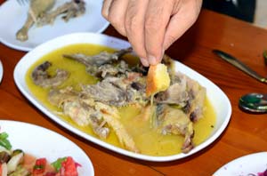 TEDBİRLİ OLMAK GEREK Şehirlerde yaşayan gençlerin büyük bölümünün bilmediği Köy Tavuğunun sarı yağlarının yüzünü kapladığı ekşili köy tavuğu ve Tavuk Dolma yemek isteyen ama zamanı olmayanların yaklaşık 1 saat önceden telefon ederek sipariş vermesi gerekiyor.