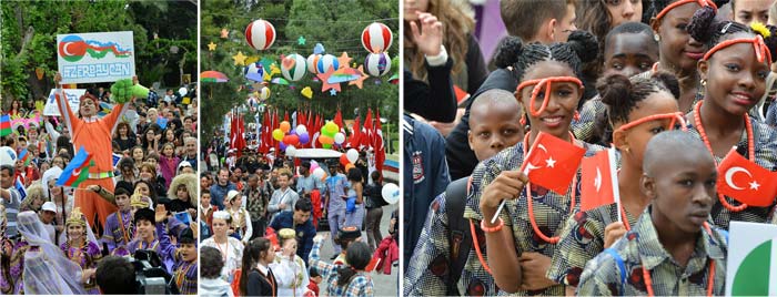 TRT tarafından bu yıl İzmirde düzenlenen 35. Uluslararası 23 Nisan Çocuk Şenliği, Kültürpark Fuar Alanında başladı. 45 ülkeden 750yi aşkın çocuğun katıldığı kortej yürüyüşü renkli görüntülere sahne oldu. Şarkılar ve danslar eşliğinde yürüyen çocuklara çizgi film karakterlerinin maketleri de eşlik etti. Yürüyüşün sonunda 4 Nolu Holde kurulan 23 Nisan Çocuk Ülkesinin açılışı yapıldı. Açılışta konuşan İzmir Valisi M. Cahit Kıraç, örnek dünya lideri Atatürkün çocuklara armağan ettiği bayramın; sevgi, barış, kardeşlik duygularını geliştirip tüm dünya çocuklarına yaymayı hedeflediğini söyledi.