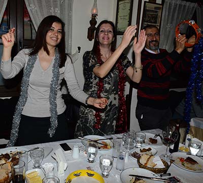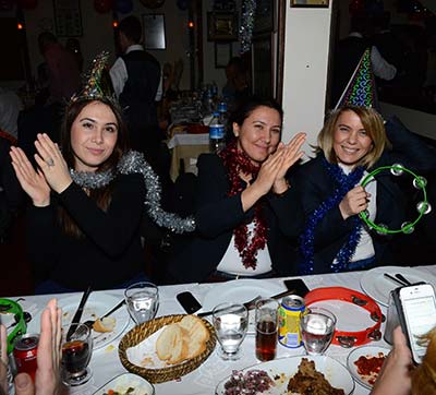 Müziği, servisi ve ürünleriyle İzmirin gözde mekanlarındanMeyhane Endülüste yılbaşı eğlencesi çok sayıda eğlenceseveri bir arayagetirdi.