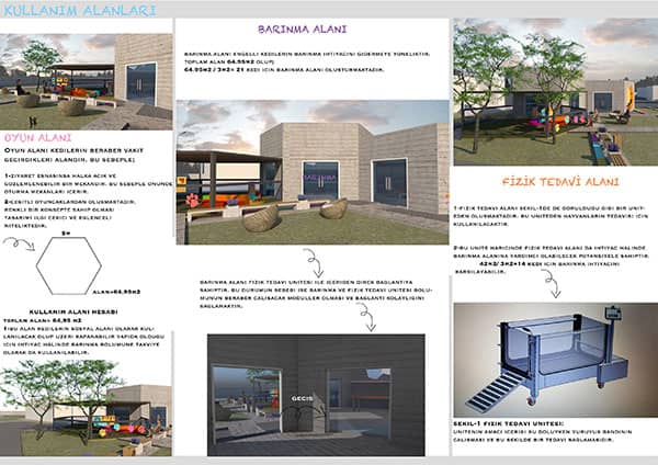 Projeyi ilk duyduklarında ekip arkadaşları ile birlikte ilk düşüncelerinin, hayvanların maruz kaldığı bilinen barınak sınırlarını kırıp onlara gerçekten hak ettikleri tasarımları sunabilmeyi amaçladıklarını dile getiren Hiçsönmezler, “Buradan çıkan fikirle ilk durağımız engelli kedilerimizi dört duvar arasına hapsetmek yerine tasarladığımız altıgen modülleri birbirine ekleyip onlara mekân özgürlüğü sağlamak oldu. Çok amaçlı modüller tasarladık. Projemiz üç modülden oluşmakta ve her bir modülün üç ayrı işlevi bulunmakta. Bu işlevler; fizik tedavi, barınma ve oyun alanı. Başta 64 engelli kediye kalıcı yuva ve fizik tedavi sağlayacak olan modüller, şeklinin özgürlüğünden dolayı birbirine eklenerek gerektiği durumda genişletilebilecek. Ödül kazanmak tabii ki gurur verici, ancak asıl heyecan verici taraf ise zevkle ve gönüllülükle tasarladığımız bu projenin hayata geçirilecek olması. Tek temennimiz ise engelli kedilerimizin engellerini bir nebze de olsun kaldırıp onlara dokunabilmek” dedi.