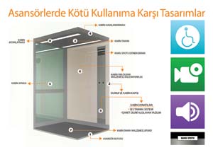-Asansörükullanmak isteyen görme engelli bir kişinin kabin donatısının üzerinde bulunanküçük kameraya doğru kat numarasını göstermesi; işitme engelli bir kişinin isehangi kata çıkacağını söylemesi yeterli oluyor.