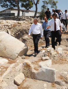 Foçadaki kazıları yerinde inceleyen İzmir Büyükşehir Belediye Başkanı Aziz Kocaoğlu, Foça Kazı Başkanı Prof. Dr. Ömer Özyiğit ve Belediye Başkanı Gökhan Demirağdan çalışmalar hakkında bilgi aldı.