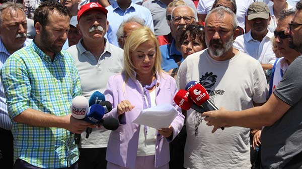 İzmir Gazeteciler Cemiyeti’nin organize ettiği protesto eylemine CHP İzmir Milletvekili Tacettin Bayır, İzmir Baro Başkanı Özkan Yücel, İzmir Tabip Odası Başkanı Süleyman Kaynak, TMMOB İKK Sekreteri Aykut Akdemir, DİSK Ege Bölge Temsilcisi Memiş Sarı, KESK Haber Sen İzmir Şube Başkanı Ayhan Zengin, Birlik Sağlık Sen Genel Başkanı Ahmet Doğruyol ve İzmir basınının temsilcileri katıldı. Konuşması sık sık sloganlarla kesilen İzmir Gazeteciler Cemiyeti Başkanı Dilek Gappi, tasarının konuşma, yazma, ifade özgürlüğünü yok edeceğini vurguladı.