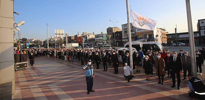 Belediye ana hizmet binası önünde de ayrı bir tören gerçekleştirildi. Başkan yardımcıları, birim müdürleri, belediye personeli, muhtarlar saat 09.05’te, tüm yurtta olduğu gibi Atatürk için saygı duruşunda bulundu. O sırada yoldan geçen ya da işyerlerinde olan vatandaşlar da saygı duruşuna eşlik etti. İstiklal Marşı’nın hep birlikte okunmasının ardından Atatürk Anıtı’na kırmızı karanfiller bırakıldı.
