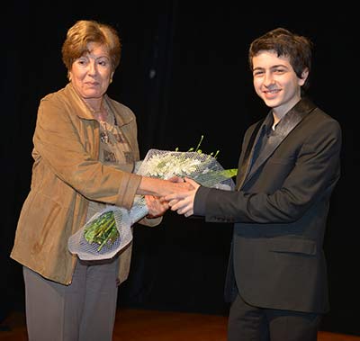 Konser sonrası İzmir Türk Amerikan Derneği Yön. Krl. Başkan yardımcısı Yıldız Ergör sahneye gelerek genç sanatçıyı çiçek vererek kutladı.