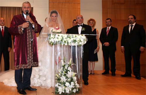 İzmir Crowne Plaza Otelde düzenlenen nikahı Karabağlar Belediye Başkanı Sıtkı Kürüm kıydı, şahitlikleri ise Sarp Sağnak, Mustafa Özpak, Kaan Tan, Metin Çetinkaya, Levent Kocatürk, Hilmi Elgin ve Tuğba Akıncılar Tan yaptı.