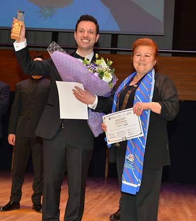 Kurtel ayrıca, “Bu yıl yarışmamızı geçtiğimiz yıl Temmuz ayında beklenmedik bir şekilde vefat eden ve yarışmacılarımıza büyük katkıları bulunan eski jüri üyelerimizden Edward Berkeley anısına adadık ve onun adına bir Özel Ödül koyduk. Bu ödüle layık bulunan yarışmacımızı ise eski jüri başkanımız Prof. Jeanette Thompson belirledi. Edward Berkeley’i özlemle anarken Ödülün sahibi Cumhur Görgün’ü de bir kez daha kutluyoruz. 14. Kez aynı gururla düzenlediğimiz ve Swissotel Büyük Efes İzmir, Arkas Holding, Heraeus, Aks Yapı, Bademler Köyü Koleji, Yapı ST Gayrimenkul Yatırım A.Ş. İzmirart Design &Event, Ahmed Adnan Saygun Sanat Merkezi ve Alsancak Rotary Kulübü üyeleri tarafından desteklenen yarışmamızda emeği geçen herkese gönülden bir kez daha teşekkür ediyoruz.” şeklinde konuştu.