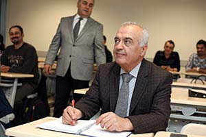 Gediz Üniversitesinin sıradışı öğrencilerinden biri de Prof.Dr. Faik Mümtaz Koyuncu. Kadın hastalıkları alanında yaptığı çalışmalarlabilinen, Türk Jinekoloji Derneğinin uzun yıllardır yöneticiliğini yapan Prof.Dr. Koyuncu, Manisa Celal Bayar Üniversitesi Tıp Fakültesinde öğretim üyesi.Akademisyenlikte çeyrek asrı geride bırakan hocaların hocası, 60 yaşında tekraröğrenci oldu. Gediz Üniversitesi Sağlık Kuruluşları Yöneticiliği Yüksek LisansProgramında eğitim görüyor. Girdiği zorlu ameliyatlara, yorucu mesaisinerağmen akşamları öğrenci sırasına oturuyor; Gedizli akademisyenler anlatıyor, oharıl harıl not tutuyor.