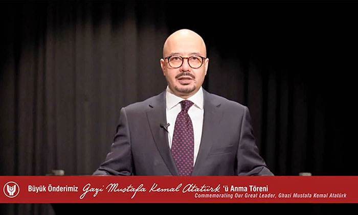 “Atatürk’ün liderlik özelliklerini bilen ve tarihsel tecrübelerini miras olarak alan Türkiye’nin, küresel sorunların üstesinden gelinmesinde bu yaklaşımları hayata geçirmesi, önemli bir uluslararası aktör ve paydaş olduğunu daha net ortaya koyması açısından önemlidir. Bu bağlamda, Atatürk’ü her zamankinden daha çok anmaya, anlamaya ve ortaya koyduğu ufkundan faydalanıp çalışmak şüphesizdir ki ülkemizi ve bizleri daha ileriye götürecektir. Bugün Mustafa Kemal Atatürk’ü saygıyla anarken öğrencilerimizin fikri hür, vicdanı hür, irfanı hür bireyler olarak yetişmelerine katkıda bulunmak için üniversitemizde durmaksızın çalıştığımızı sizlerle paylaşmak isterim. O’nun liderliği yolumuzu sonsuza dek aydınlatmaya devam edecektir”