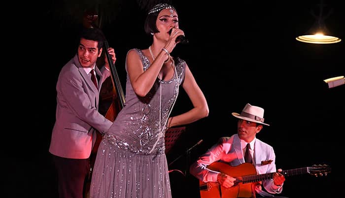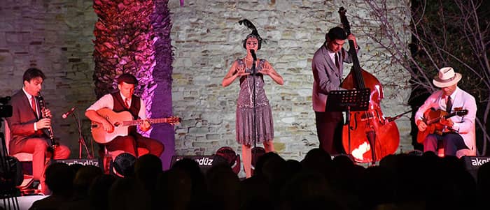 Kuşadası’nın tarihi Güvercinada Kalesi, akustik caz grubu Flapper Swing’in sahne aldığı muhteşem bir konsere ev sahipliği yaptı. 1920’li ve 30’lu yılların caz esintilerini Kuşadası’na taşıyan grup, kostümleri ve sahne performansları ile sanatseverlere unutulmaz bir gece yaşattı.