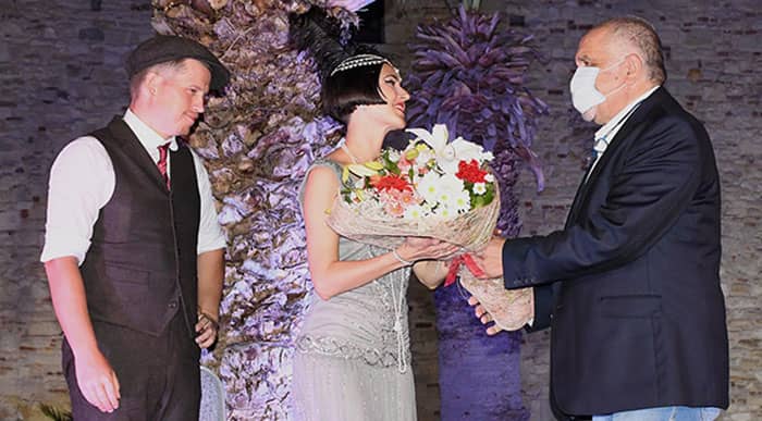 Gecenin sonunda KUSAV Yönetim Kurulu Üyesi Turan Kesim, vokal Nevin Hetmanek’e Kuşadası Belediye Başkanı Ömer Günel adına teşekkür ederek çiçek takdim etti.