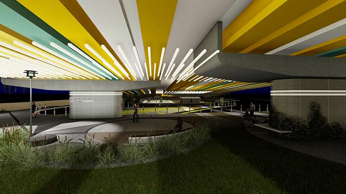Dr. Mengi, şöyle devam etti: “Kentsel Tasarım ve Kent Estetiği Şube Müdürlüğü’nden 6 kişilik ekiple birlikte çalışarak oluşturduğumuz tasarımlarda birinci önceliğimiz, İzmir’in diğer bölgelerinde de uygulanabilir olması ve çevreye hiçbir zarar vermemesiydi. Bunun için her detayı göz önünde bulundurduk. Deniz yosununun havayı temizleme özelliği var. Bu nedenle tasarımda oluşturulan sosyal alanların çevresine, algleri de kullanarak bahçeler yapılmasını istedik. Viyadük altındaki kısmın canlandırılması, bu sayede o mekanı kullanan kişilere aidiyet hissi verebileceğimizi düşündük. Viyadük altını da duvar sanatı aracılığıyla daha kullanılır ve cazibeli bir mekan haline getirmeyi amaçladık. Yaya yolu ve bekleme alanlarının çevresinde yeşil koridorlar oluşturduk. İzmir’de, ihtiyaç duyulan diğer noktalar için de ekolojik tasarımlar yapmaya, şehrimize sağlayacak çalışmalar geliştirmeye devam edeceğiz.”