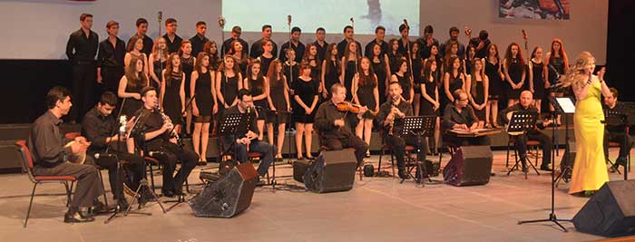 Egeüniversitesi Devlet Türk Müziği Konservatuvarı öğrencilerinin enstrümanlarıylaeşlik ettiği okul korosu, şarkı ve türkülerle geceye ar bölümü hocaları veokulun mezun öğrencileri tarafından okulun müzik öğretmeni yönetiminde konserverildi.
