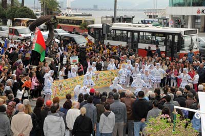 Karşıyaka Belediyesi ile İlçe Milli Eğitim Müdürlüğü işbirliği ile bu yıl 19. gerçekleştirilen Uluslar arası Karşıyaka Çocuk Şenliğinde kentin her köşesinde ayrı ayrı düzenlenen gösterilerde Karşıyaka tam bir bayram yerine döndü. 17 ülkeden 19 grubun katıldığı gösterilerde, vatandaşlar konuklara büyük ilgi gösterirken, dostluk, barış, huzur ve sevgi görüntüleri sergilendi. Karşıyakanın en kalabalık alanlarından biri olan Karşıyaka Çarşısında, İskele önünde kurulan sahnede Bosna-Hersek, Belarus, Slovenya, Endonozya, Bulgaristan, Gürcistan, Polonya, Rusya, Türkiye-Kars, Litvanya, Latvia ve Makedonya (Ohri) grupları katıldı. Yaklaşık 3 saat süren gösterilerde konukların çevresini saran vatandaşlar rengarenk kıyafetler içerisinde yöresel oyunlarını sunan öğrencileri hayranlıkla izledi. Alkışlarla konuk öğrencilere destek olan vatandaşlar, kentin güzelliklerini yaşamanın mutluluğunu tatma imkanı buldu. Karşıyakada ayrıca Carrefour Sa alışveriş merkezi ile Ege Park Mavişehirde gösteriler yapıldı. Kapalı alanda hazırlanan platformda sunulan gösteriler, alanı dolduran yüzlerce izleyici tarafından heyecanla takip edildi. Konuk aldıkları arkadaşların gösterilerini adım adım izleyen Karşıyakalı çocukla da ellerindeki fotoğraf makineleri ve kameralar ile kayıtlar yaptı. Buradaki gösterilere Belarus, Arnavutluk, KKTC, Endonezya, Kosova, Romanya, Bulgaristan-Burgaz ve Slovenya katıldı.