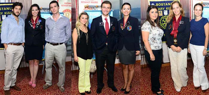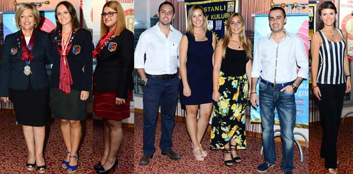 Bostanlı Rotaract Kulübü Başkanı Gizem Özer ile Bostanlı Rotary Kulübü Başkanı Berkay Eskinazi, Gülşen Altına gününanısı olarak kulüp flamalarını armağan etti.