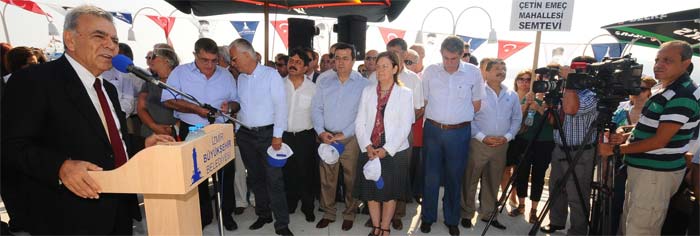 Üçkuyular Levent Marina Kırmızı Fener önünde gerçekleştirilen törene İzmir Milletvekilleri Hülya Güven, Alaattin Yüksel, Mustafa Moroğlu, CHP İl Bakanı Ali Engin, ilçe belediye başkanları, oda başkanları, sivil toplum kuruluşları temsilcileri ile vatandaşlar katıldı. Sanayicisinden bilim insanlarına kadar bir çok kişinin çevreyle ilgili sürdürülebilirlik kelimesini kullanarak çalışma yürüttüğünü belirten Başkan Kocaoğlu, Körfezde su değerlerini yüzülebilir hale getirirsek, koskoca Körfezi 70 sene önceye döndürmüş, temizlemiş bir kent olarak dünyadaki saygın yerimizi alacağız. Temizlenmiş körfez, tasarlanmış 40 kilometrelik bir sahil bandıyla beraber altyapısını hemen hemen tamamlamış bir İzmiri 2014 yılında tüm dünyaya görücüye çıkartmayı hedefliyoruz. Bir an evvel İzmir Körfezinde yüzelim diyorum diye konuştu.