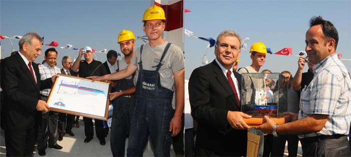 Törenin ardından, Başkan Kocaoğlu ve beraberindekiler şehitler anısına ve gemilerin hizmete alınması dolayısıyla denize çelenk bıraktılar. Firma temsilcisi Atilla Balık, İmbat römorkörunun maketini Başkan Kocaoğluna verdi. Meltem gemisinin plaketini ise, firmanın çalışanlarını Başkana takdim etti.